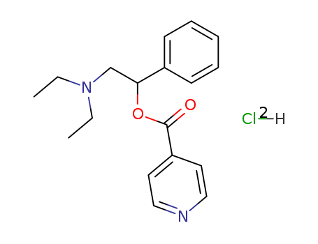- Synonyms:Isonicotinicacid, a-(diethylaminomethyl)benzylester, dihydrochloride (6CI)