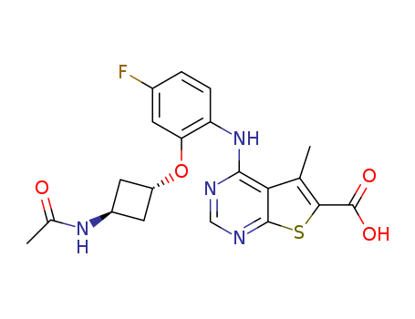 - Synonyms:4-[2-(trans-3-acetylamino-cyclobutoxy)-4-fluoro-phenylamino]-5-methyl-thieno[2,3-d]pyrimidine-6-carboxylic acid