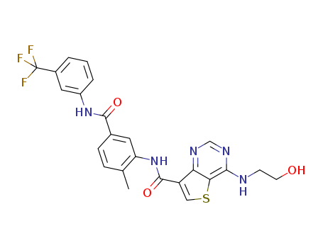 4-(2-hydroxyethylamino)-N-(2-methyl-5-(3-(trifluoromethyl)phenylcarbamoyl)phenyl)thieno[3,2-d]pyrimidine-7-carboxamide(1318241-61-0)