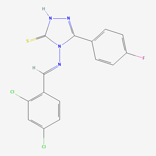 - Synonyms:STK580087;AKOS005503908;AKOS024320224;585552-23-4;4-((2,4-Dichlorobenzylidene)amino)-5-(4-fluorophenyl)-4H-1,2,4-triazole-3-thiol;4-{[(E)-(2,4-dichlorophenyl)methylidene]amino}-5-(4-fluorophenyl)-2,4-dihydro-3H-1,2,4-triazole-3-thione;4-{[(E)-(2,4-dichlorophenyl)methylidene]amino}-5-(4-fluorophenyl)-4H-1,2,4-triazole-3-thiol
