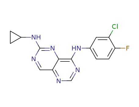 - Name: 4-[(3-Chloro-4-fluoro-phenyl)amino]-6-(cyclopropylamino)-pyrimido-[5,4-d]-pyrimidine