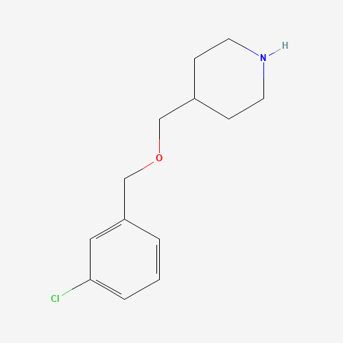 - Synonyms:4-{[(3-Chlorobenzyl)oxy]methyl}piperidine;946758-47-0;4-{[(3-chlorophenyl)methoxy]methyl}piperidine;4-[(3-chlorophenyl)methoxymethyl]piperidine;Piperidine, 4-[[(3-chlorophenyl)methoxy]methyl]-;4-[[(3-Chlorophenyl)methoxy]methyl]piperidine;DTXSID401252258;AKOS011624763