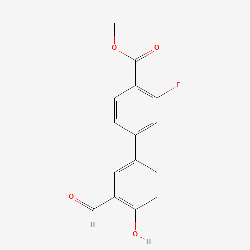 - Synonyms:1111120-84-3;4-(3-FLUORO-4-METHOXYCARBONYLPHENYL)-2-FORMYLPHENOL;DTXSID10685307;MFCD11870997;Methyl 3-fluoro-3'-formyl-4'-hydroxy[1,1'-biphenyl]-4-carboxylate