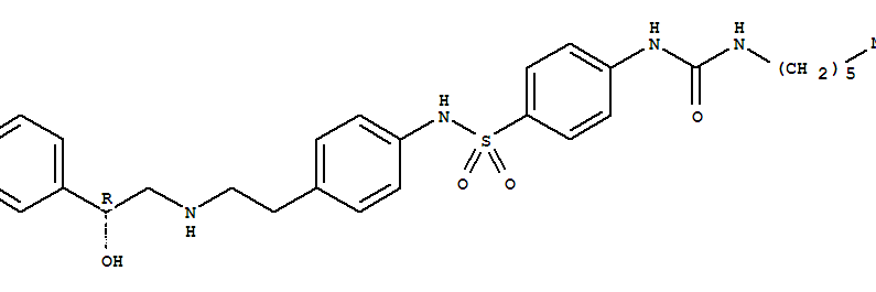 - Synonyms:Benzenesulfonamide,4-[[(hexylamino)carbonyl]amino]-N-[4-[2-[[2-hydroxy-2-(3-pyridinyl)ethyl]amino]ethyl]phenyl]-,(R)-; L 757793