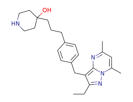 - Synonyms:4-(3-(4-((2-ethyl-5,7-dimethylpyrazolo[1,5-a]pyrimidin-3-yl)methyl)phenyl)propyl)piperidin-4-ol