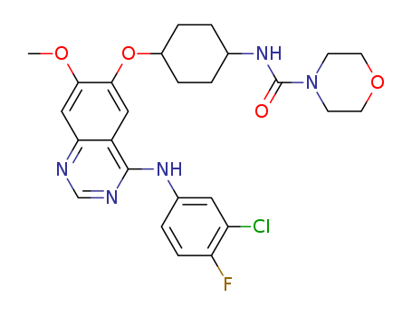 - Synonyms:4-[(3-chloro-4-fluoro-phenyl)amino]-6-{trans-4-[(morpholin-4-yl)carbonylamino]-cyclohexane-1-yloxy}-7-methoxy-quinazoline