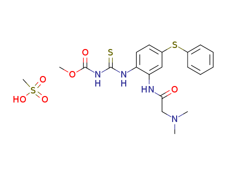 - Synonyms:4-(3-methoxycarbonyl-2-thioureido)-3-(2-dimethylaminoacetamido)diphenyl thioether methanesulphonate
