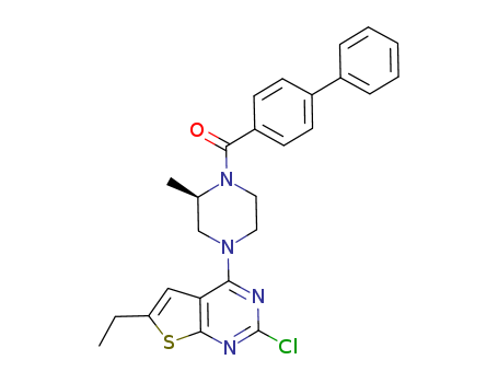 - Synonyms:4-[(3R)-4-(1,1'-biphenyl-4-ylcarbonyl)-3-methylpiperazin-1-yl]-2-chloro-6-ethylthieno[2,3-d]pyrimidine