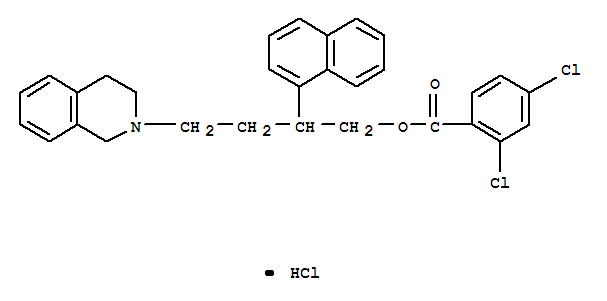 - Synonyms:Benzoicacid, 2,4-dichloro-, 4-(3,4-dihydro-2(1H)-isoquinolinyl)-2-(1-naphthalenyl)butylester, hydrochloride (9CI)
