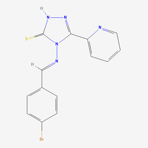 - Synonyms:497823-80-0;4-((4-Bromobenzylidene)amino)-5-(pyridin-2-yl)-4H-1,2,4-triazole-3-thiol;STK575787;AKOS002175808;AKOS005500198;4-{[(E)-(4-bromophenyl)methylidene]amino}-5-(2-pyridinyl)-4H-1,2,4-triazole-3-thiol;4-{[(E)-(4-bromophenyl)methylidene]amino}-5-(pyridin-2-yl)-2,4-dihydro-3H-1,2,4-triazole-3-thione