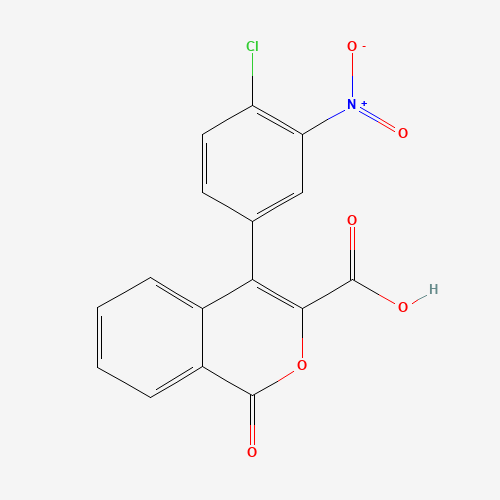 - Synonyms:442531-35-3;4-(4-Chloro-3-nitrophenyl)-1-oxo-1H-isochromene-3-carboxylic acid;4-(4-chloro-3-nitrophenyl)-1-oxoisochromene-3-carboxylic acid;1H-2-benzopyran-3-carboxylic acid, 4-(4-chloro-3-nitrophenyl)-1-oxo-;Oprea1_420625;DTXSID601164471;AKOS000266372;SR-01000597149;SR-01000597149-1;4-(4-Chloro-3-nitrophenyl)-1-oxo-1H-2-benzopyran-3-carboxylic acid