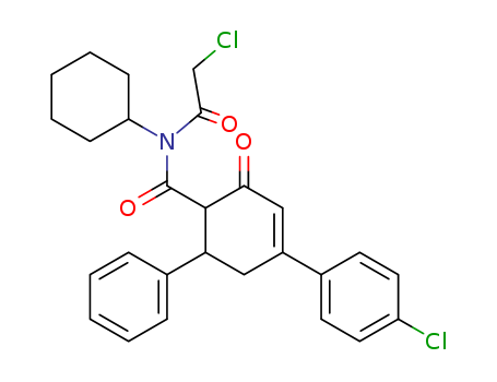 - Synonyms:4-(4-Chloro-phenyl)-2-oxo-6-phenyl-cyclohex-3-enecarboxylic acid (2-chloro-acetyl)-cyclohexyl-amide