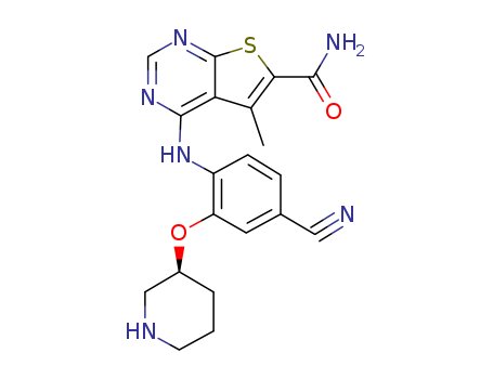 4-[4-Cyano-2-((S)-piperidin-3-yloxy)-phenylamino]-5-methyl-thieno[2,3-d]pyrimidine-6-carboxylic acid amide(1332710-12-9)