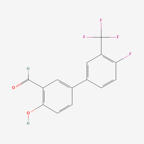 - Synonyms:1261898-69-4;4-(4-FLUORO-3-TRIFLUOROMETHYLPHENYL)-2-FORMYLPHENOL;DTXSID10685342;MFCD18314867;4'-Fluoro-4-hydroxy-3'-(trifluoromethyl)[1,1'-biphenyl]-3-carbaldehyde
