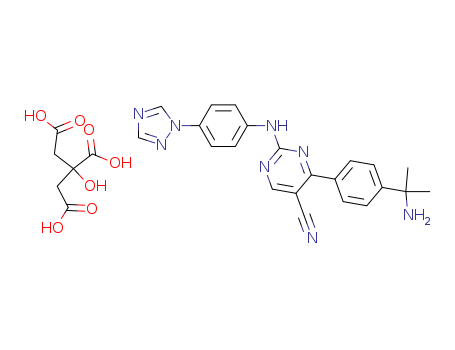 - Name: 4-[4-(1-Amino-1-methylethyl)phenyl]-5-cyano-N-[4-(1,2,4-triazol-1-yl)phenyl]pyrimidine-2-amine citrate