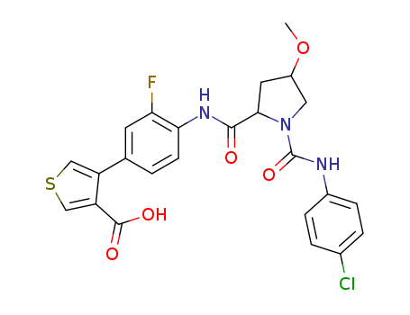 - Name: 4-(4-{[1-(4-Chloro-phenylcarbamoyl)-4-methoxy-pyrrolidine-2-carbonyl]-amino}-3-fluoro-phenyl)-thiophene-3-carboxylic acid