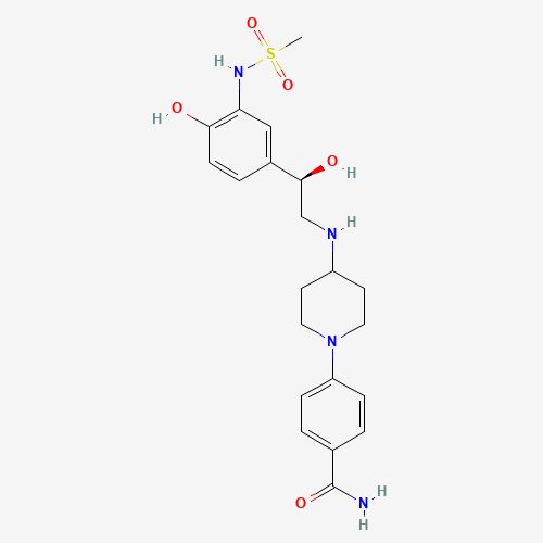 - Synonyms:CHEMBL286574;SCHEMBL6074125;SKQVEPBWSASIEZ-FQEVSTJZSA-N;DTXSID801112088;BDBM50098663;340756-88-9;4-[4-[[(2R)-2-Hydroxy-2-[4-hydroxy-3-[(methylsulfonyl)amino]phenyl]ethyl]amino]-1-piperidinyl]benzamide;4-{4-[(2R)-2-Hydroxy-2-(4-hydroxy-3-methanesulfonylamino-phenyl)-ethylamino]-piperidin-1-yl}-benzamide;4-{4-[(2R)-2-Hydroxy-2-(4-hydroxy-3-methanesulfonylamino-phenyl)-ethylamino]-piperidine-1-yl}-benzamide;4-{4-[2-Hydroxy-2-(4-hydroxy-3-methanesulfonylamino-phenyl)-ethylamino]-piperidin-1-yl}-benzamide