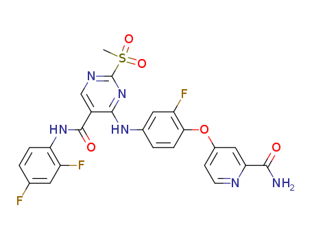 - Synonyms:4-(4-(2-carbamoylpyridin-4-yloxy)-3-fluorophenylamino)-N-(2,4-difluorophenyl)-2-(methylsulfonyl)pyrimidine-5-carboxamide