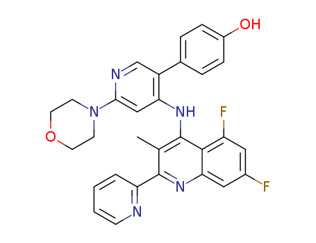 - Synonyms:4-(4-(5,7-difluoro-3-methyl-2-(pyridin-2-yl)quinolin-4-ylamino)-6-morpholinopyridin-3-yl)phenol