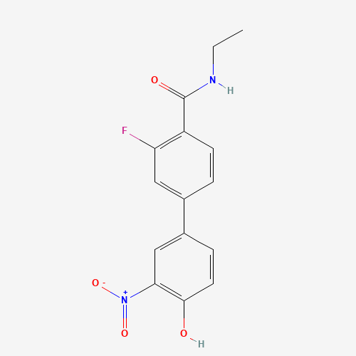 - Synonyms:1261946-55-7;4-[4-(ETHYLCARBAMOYL)-3-FLUOROPHENYL]-2-NITROPHENOL;DTXSID70686330;MFCD18315995;N-Ethyl-3-fluoro-4'-hydroxy-3'-nitro[1,1'-biphenyl]-4-carboxamide