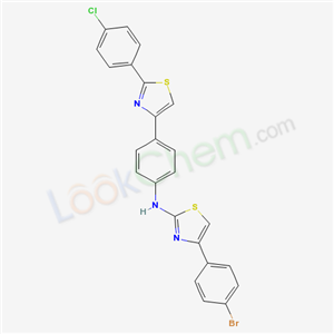 - Synonyms:4-(4-bromophenyl)-N-{4-[2-(4-chlorophenyl)-1,3-thiazol-4-yl]phenyl}-1,3-thiazol-2-amine;4-(4-Bromophenyl)-N-(4-(2-(4-chlorophenyl)-4-thiazolyl)phenyl)-2-thiazolamine;2-Thiazolamine,4-(4-bromophenyl)-N-(4-(2-(4-chlorophenyl)-4-thiazolyl)phenyl);