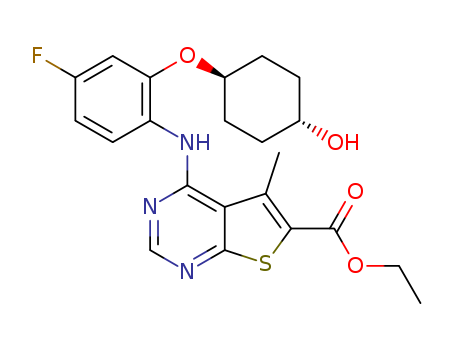 4-[4-fluoro-2-(trans-4-hydroxy-cyclohexyloxy)-phenylamino]-5-methyl-thieno[2,3-d]pyrimidine-6-carboxylic acid ethyl ester(1332634-39-5)