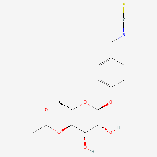 - Synonyms:CHEMBL260025;SCHEMBL1608590;DTXSID501216047;4-(4'-O-Acetyl-alpha-L-rhamnosyloxy)benzyl isothiocyanate;4-[(4'-O-Acetyl-alpha-L-rhamnosyloxy)benzyl]isothiocyanate;4-(4-O-Acetyl-alpha-L-rhamnopyranosyloxy)benzyl isothiocyanate;4-(4'-o-acetyl-alpha-l-rhamnopyranosyloxy) benzyl isothiocyanate;73255-41-1