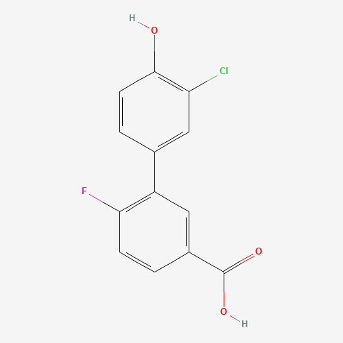- Synonyms:1261921-11-2;4-(5-CARBOXY-2-FLUOROPHENYL)-2-CHLOROPHENOL;DTXSID00686065;MFCD18315687;3'-Chloro-6-fluoro-4'-hydroxy[1,1'-biphenyl]-3-carboxylic acid