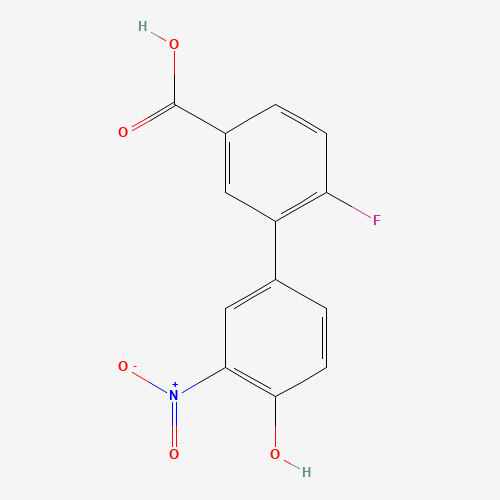 - Synonyms:1261957-72-5;4-(5-CARBOXY-2-FLUOROPHENYL)-2-NITROPHENOL;DTXSID50686297;MFCD18315960;6-Fluoro-4'-hydroxy-3'-nitro[1,1'-biphenyl]-3-carboxylic acid