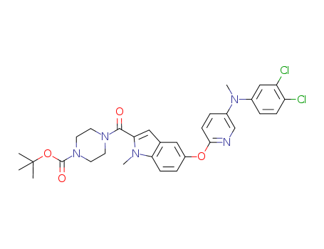 4-(5-{5-[(3,4-dichlorophenyl)methylamino]pyridin-2-yloxy}-1-methyl-1H-indole-2-carbonyl)piperazine-1-carboxylic acid tert-butyl ester(1150745-52-0)