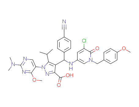 - Name: 4-[[5-chloro-1-(4-methoxy-benzyl)-6-oxo-1,6-dihydro-pyridin-3-ylamino]-(4-cyano-phenyl)-methyl]-1-(2-dimethylamino-4-methoxy-pyrimidin-5-yl)-5-isopropyl-1H-pyrazole-3-carboxylic acid