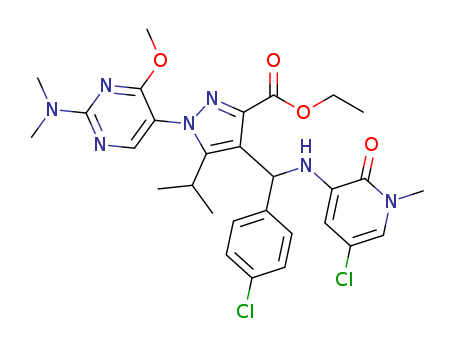 - Name: 4-[(5-chloro-1-methyl-2-oxo-1,2-dihydro-pyridin-3-ylamino)-(4-chloro-phenyl)-methyl]-1-(2-dimethylamino-4-methoxy-pyrimidin-5-yl)-5-isopropyl-1H-pyrazole-3-carboxylic acid ethyl ester