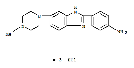 - Synonyms:Benzenamine,4-[5-(4-methyl-1-piperazinyl)-1H-benzimidazol-2-yl]-, trihydrochloride (9CI); H8208; Hoechst 8208
