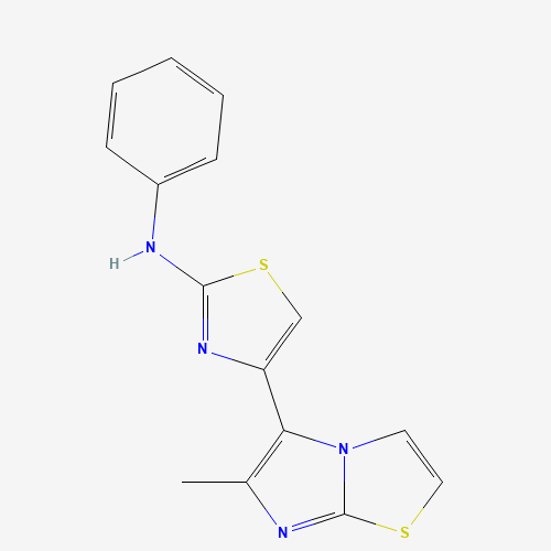 - Synonyms:Oprea1_232802;SCHEMBL12390652;DTXSID701177924;STK018217;4-(6-methylimidazo[2,1-b][1,3]thiazol-5-yl)-N-phenyl-1,3-thiazol-2-amine;AKOS002382829;SR-01000234373;SR-01000234373-1;4-(6-Methylimidazo[2,1-b]thiazol-5-yl)-N-phenyl-2-thiazolamine;315703-76-5