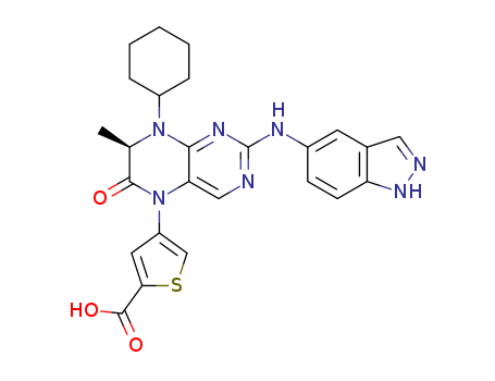 4-[(7R)-8-cyclohexyl-2-(1H-indazol-5-ylamino)-7-methyl-6-oxo-7,8-dihydropteridin-5(6H)-yl]thiophene-2-carboxylic acid(1435459-61-2)