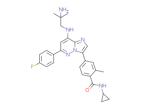 - Name: 4-{8-[(2-amino-2-methylpropyl)amino]-6-(4-fluorophenyl)imidazo[1,2-b]pyridazin-3-yl}-N-cyclopropyl-2-methylbenzamide