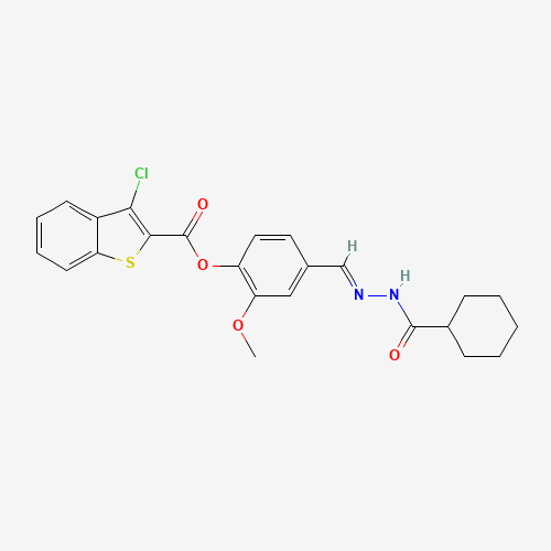 - Name: 4-{(E)-[(Cyclohexylcarbonyl)hydrazono]methyl}-2-methoxyphenyl 3-chloro-1-benzothiophene-2-carboxylate