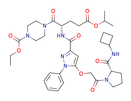 - Name: 4-[(S)-2-({5-[2-((S)-2-cyclobutylcarbamoyl-pyrrolidin-1-yl)-2-oxo-ethoxy]-1-phenyl-1H-pyrazole-3-carbonyl}-amino)-4-isopropoxycarbonyl-butyryl]-piperazine-1-carboxylic acid ethyl ester