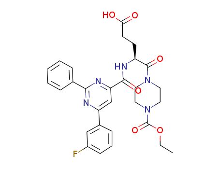 - Name: 4-((S)-4-carboxy-2-{[6-(3-fluoro-phenyl)-2-phenyl-pyrimidine-4-carbonyl]-amino}-butyryl)-piperazine-1-carboxylic acid ethyl ester