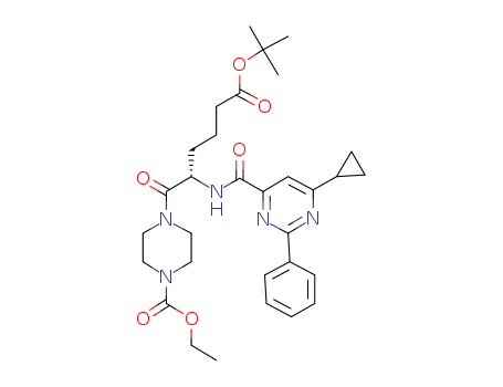 4-{(S)-5-tert-butoxycarbonyl-2-[(6-cyclopropyl-2-phenyl-pyrimidine-4-carbonyl)-amino]-pentanoyl}-piperazine-1-carboxylic acid ethyl ester(913949-16-3)