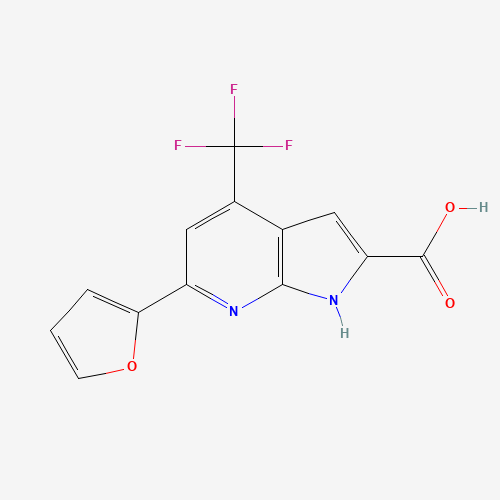 - Synonyms:4-(Trifluoromethyl)-6-(furan-2-yl)-1H-pyrrolo[2,3-b]pyridine-2-carboxylic acid;6-(furan-2-yl)-4-(trifluoromethyl)-1H-pyrrolo[2,3-b]pyridine-2-carboxylic acid;DNYZDAHKXQMBEW-UHFFFAOYSA-N;DTXSID101136512;AKOS015855874;1083196-27-3;J-513910;1H-Pyrrolo[2,3-b]pyridine-2-carboxylic acid, 6-(2-furanyl)-4-(trifluoromethyl)-