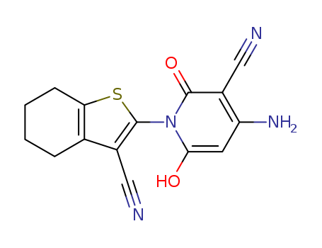 - Synonyms:4-amino-1-(3-cyano-4,5,6,7-tetrahydrobenzo[b]thiophen-2-yl)-6-hydroxy-1,2-dihydro-2-pyridone-3-carbonitrile