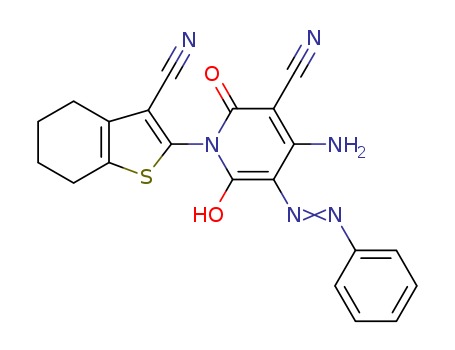 - Synonyms:4-amino-1-(3-cyano-4,5,6,7-tetrahydrobenzo[b]thiophen-2-yl)-6-hydroxy-2-oxo-5-phenylazo-1,2-dihydropyridine-3-carbonitrile