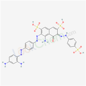 - Synonyms:4-Amino-3-((4-((2,4-diaminophenyl)azo)phenyl)azo)-5-hydroxy-6-((4-sulphophenyl)azo)naphthalene-2,7-disulphonic acid;EINECS 301-583-7;