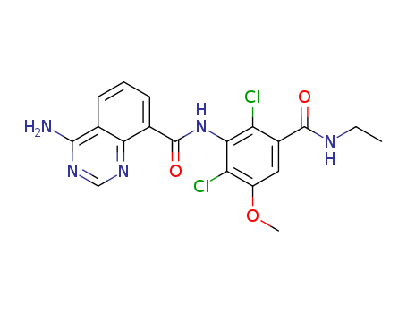 - Synonyms:4-amino-N-(2,6-dichloro-3-(ethylcarbamoyl)-5-methoxyphenyl)quinazoline-8-carboxamide