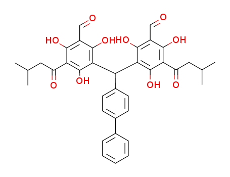 - Synonyms:4-biphenyl-1-yl-methylene-bis(3-isopentanoyl-5-formyl-2,4,6-trihydroxybenzene)