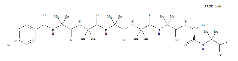 - Synonyms:Alanine,N-[N-[N-[N-[N-[N-[N-[N-(4-bromobenzoyl)-2-methylalanyl]-2-methylalanyl]-2-methylalanyl]-2-methylalanyl]-2-methylalanyl]-L-leucyl]-2-methylalanyl]-2-methyl-,methyl ester