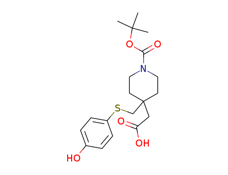 4-carboxymethyl-4-(4-hydroxy-phenylsulfanylmethyl)-piperidine-1-carboxylic acid tert-butyl ester(441774-11-4)