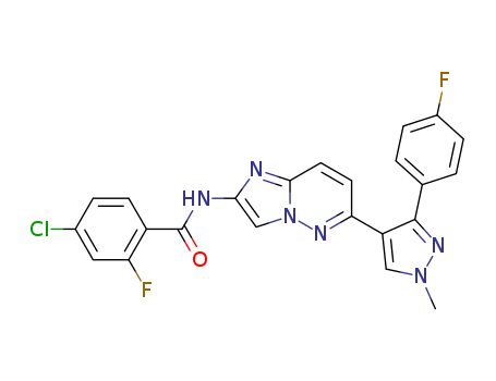 - Name: 4-chloro-2-fluoro-N-(6-(3-(4-fluorophenyl)-1-methyl-1H-pyrazol-4-yl)imidazo[1,2-b]pyridazin-2-yl)benzamide