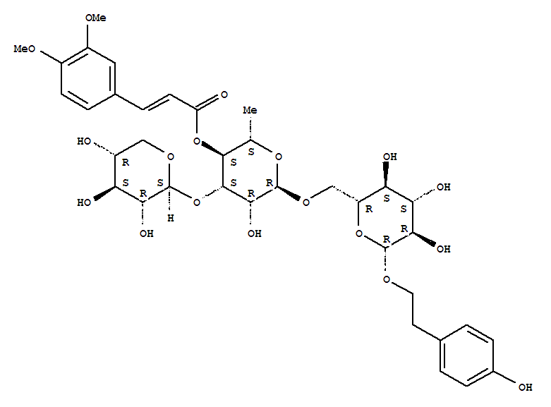 - Synonyms:b-D-Glucopyranoside,2-(4-hydroxyphenyl)ethyl O-b-D-xylopyranosyl-(1®3)-O-6-deoxy-4-O-[3-(3,4-dimethoxyphenyl)-1-oxo-2-propenyl]-a-L-mannopyranosyl-(1®6)- (9CI)